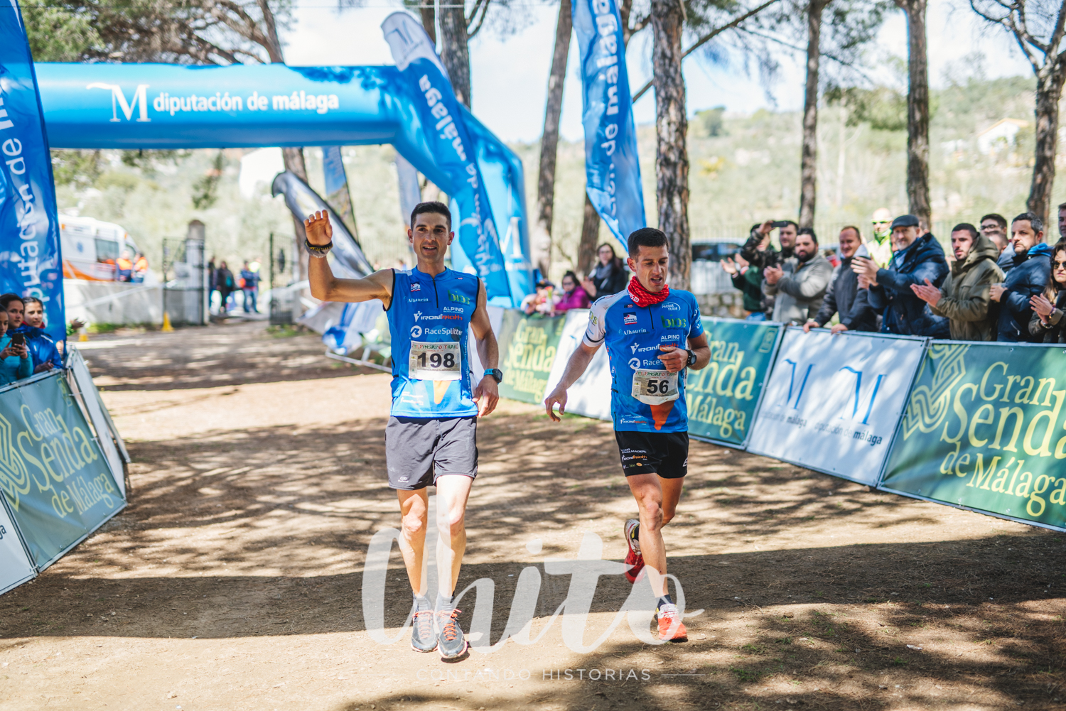 Y nos confirman el extremo: Bravo Luna vuelve a asestar el golpe y viene bajando como alma que lleva el diablo en primera posición con Pitu en busca de Yunquera. Llega Bravo Luna, pero Pitu no aparece. El primero viene andando, como si no quisiera disputar la victoria. Mira atrás una y otra vez. Hace aspavientos a la gente de la organización y cruza la cinta casi a regañadientes. Lo primero que me dice al coger el micro es: “Venía con Pitu, pero se ha doblado el tobillo bajando y se ha quedado detrás”. Suelta la cinta del ganador y sale deshaciendo el camino andado. Va a buscar a su rival. Así es este deporte.